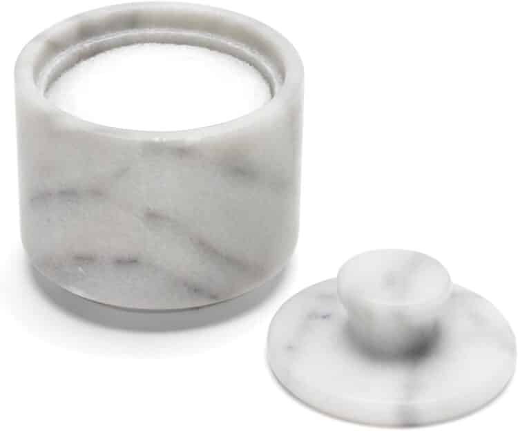 This stylish vessel is made from 100% marble and will keep your salt fresh for a very long time. Plus it will add a touch of elegance to your kitchen countertop.