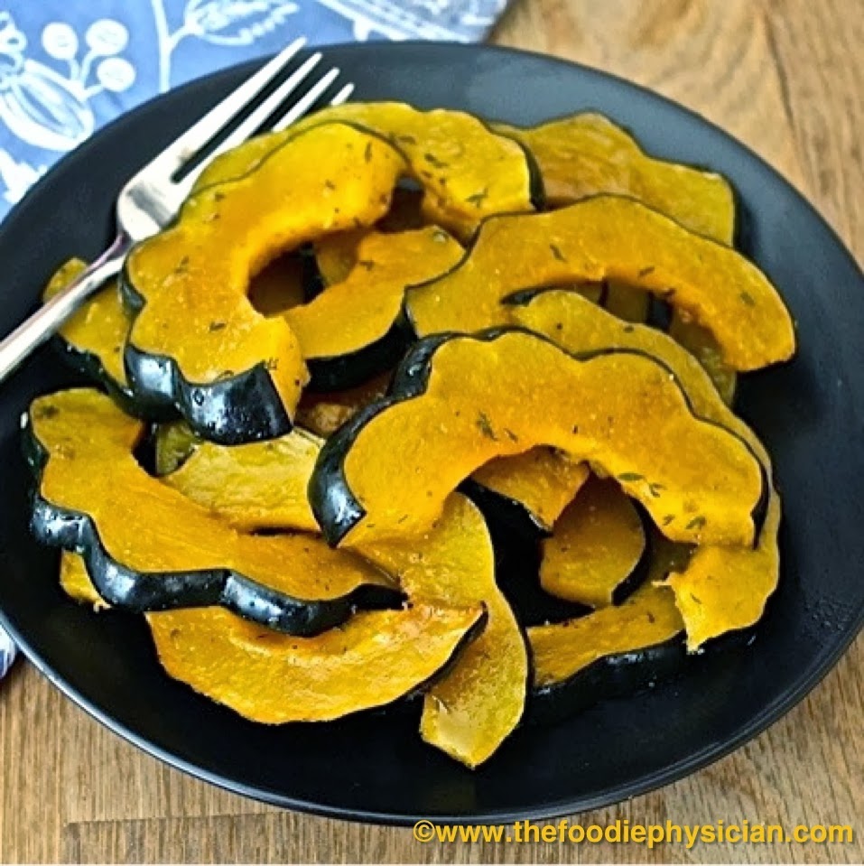 I toss slices of acorn squash with olive oil, salt, pepper and thyme and roast them in the oven. A final brushing with maple syrup enhances its natural sweetness. It's the perfect side dish for your holiday table!